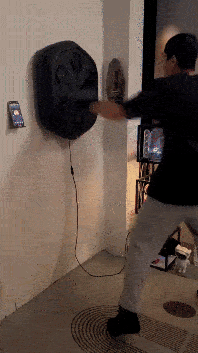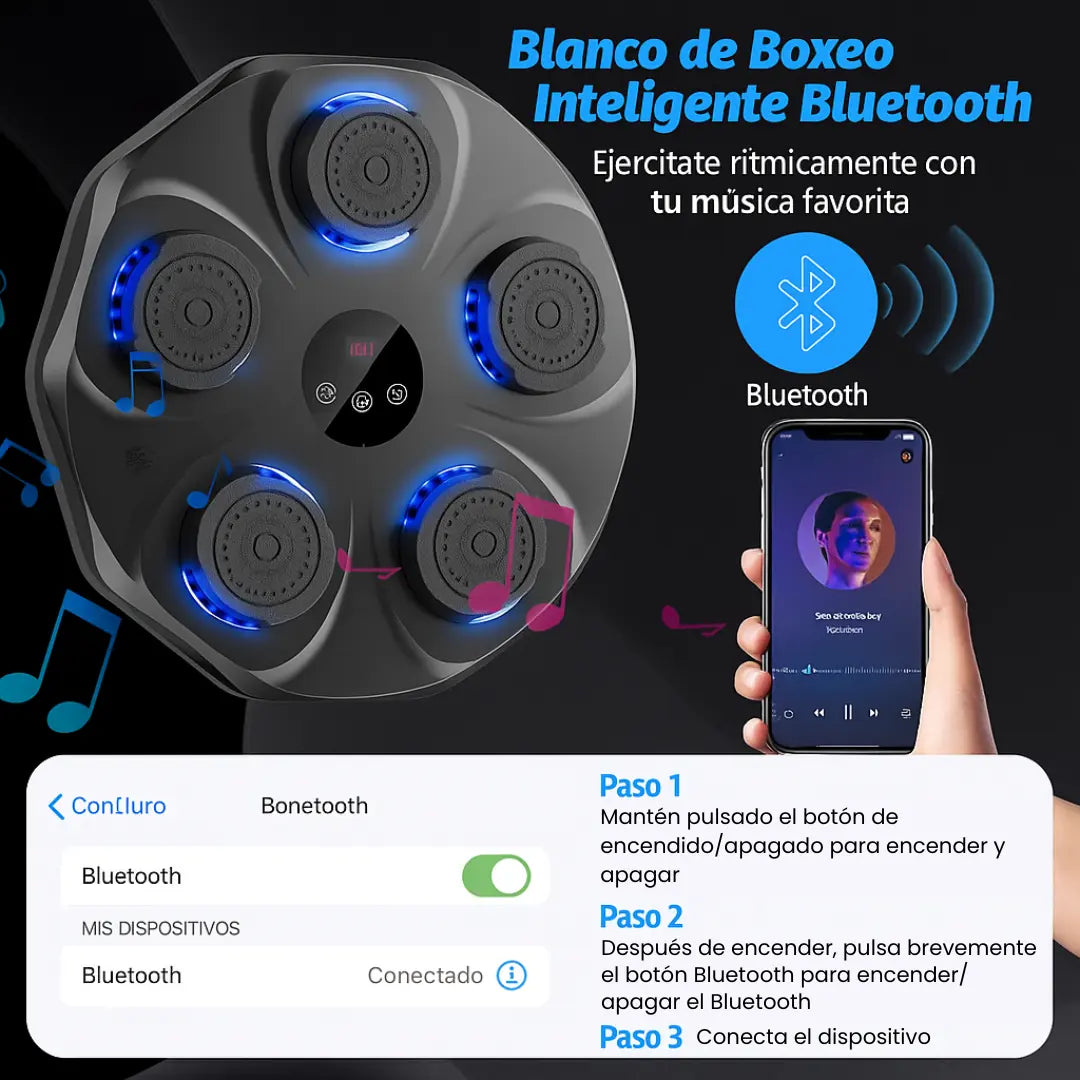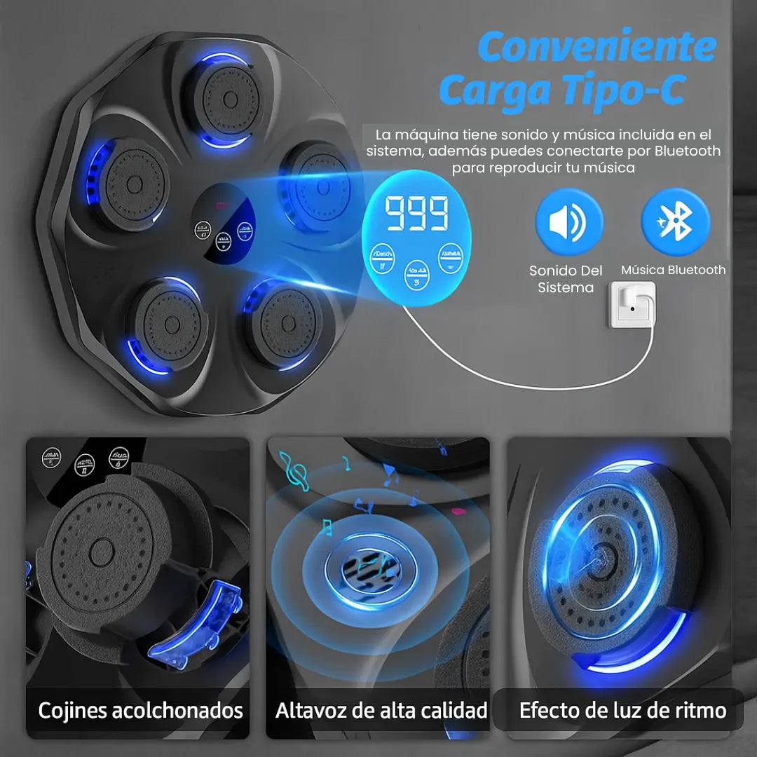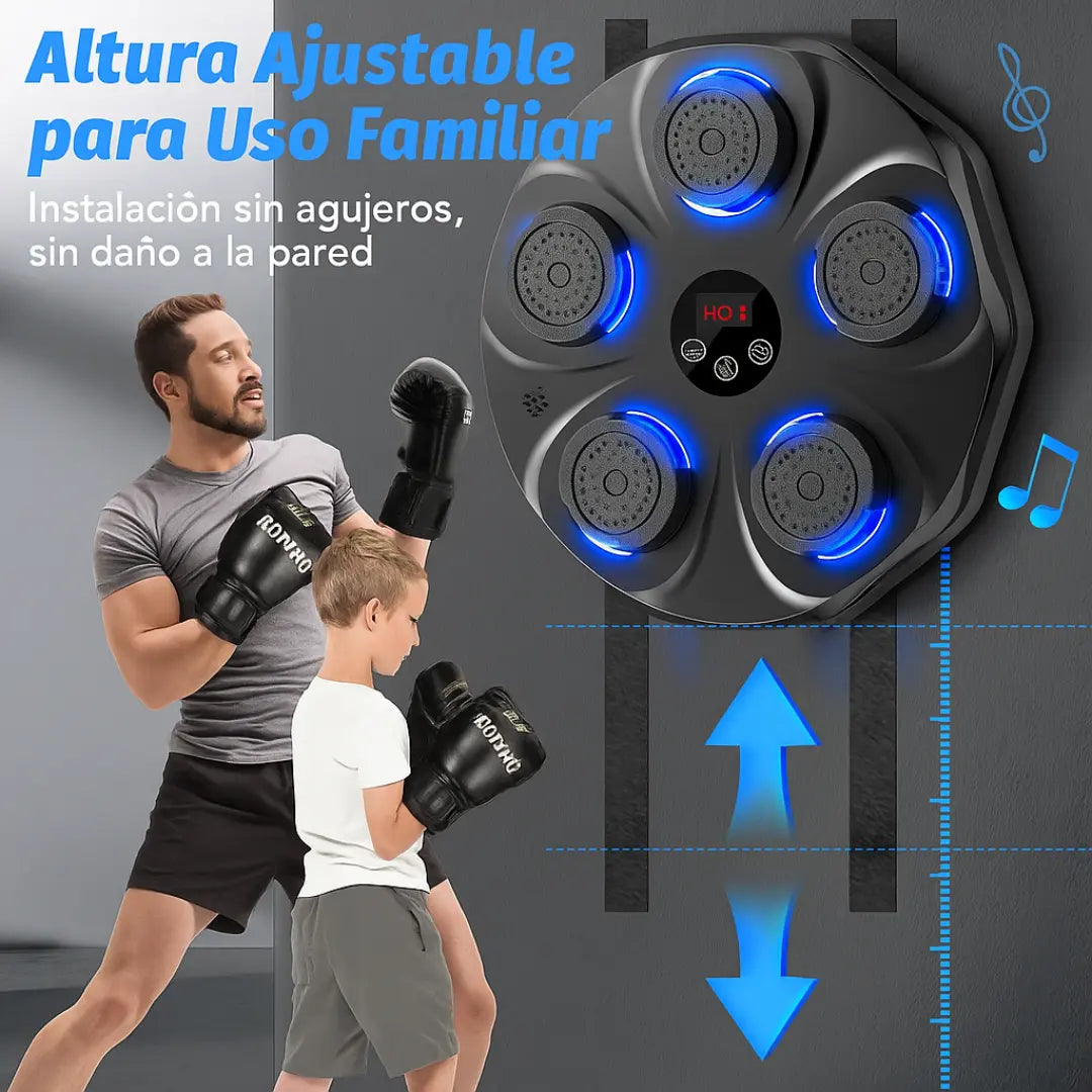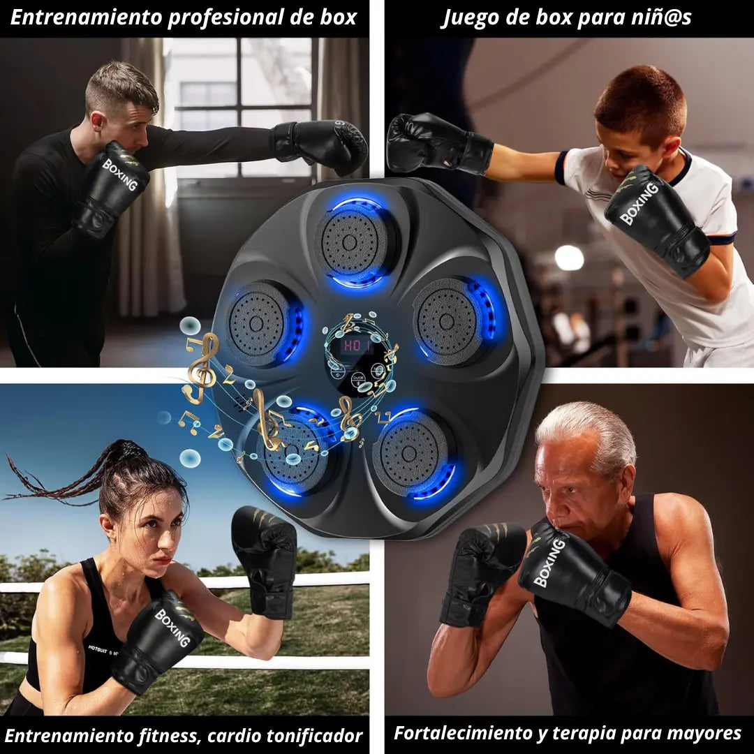 1* Máquina de box con bocina BT y Luces 1* Par de guantes de box